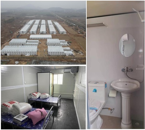 “越是艱難,越要咬緊牙關(guān)挺過去”,項(xiàng)目現(xiàn)場負(fù)責(zé)人說。在施工、采購、調(diào)度各環(huán)節(jié),國資集團(tuán)不斷創(chuàng)新,會(huì)同各參建單位想盡一切辦法為項(xiàng)目建設(shè)提速,截至2月19日,準(zhǔn)備區(qū)折疊房、緩沖區(qū)活動(dòng)板房、隔離區(qū)打包房、污水處理點(diǎn)用房已安裝完成,室內(nèi)水電、家具、電器已完成90%,室外附屬工程已基本完成。已建成的折疊房和打包房,配備了空調(diào)、熱水器、淋浴房、馬桶、洗手臺(tái)、床、被單、棉被、枕頭、桌子、凳子等,必需的生活配套一應(yīng)俱全。